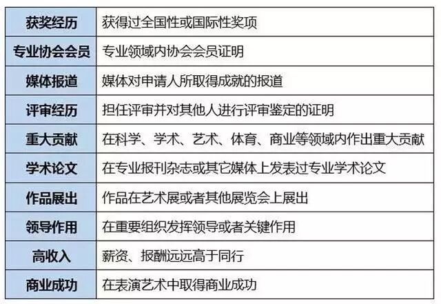■ 只要满足以下10项要求中至少3项,你就可以通过EB-1A,快速获批绿卡: