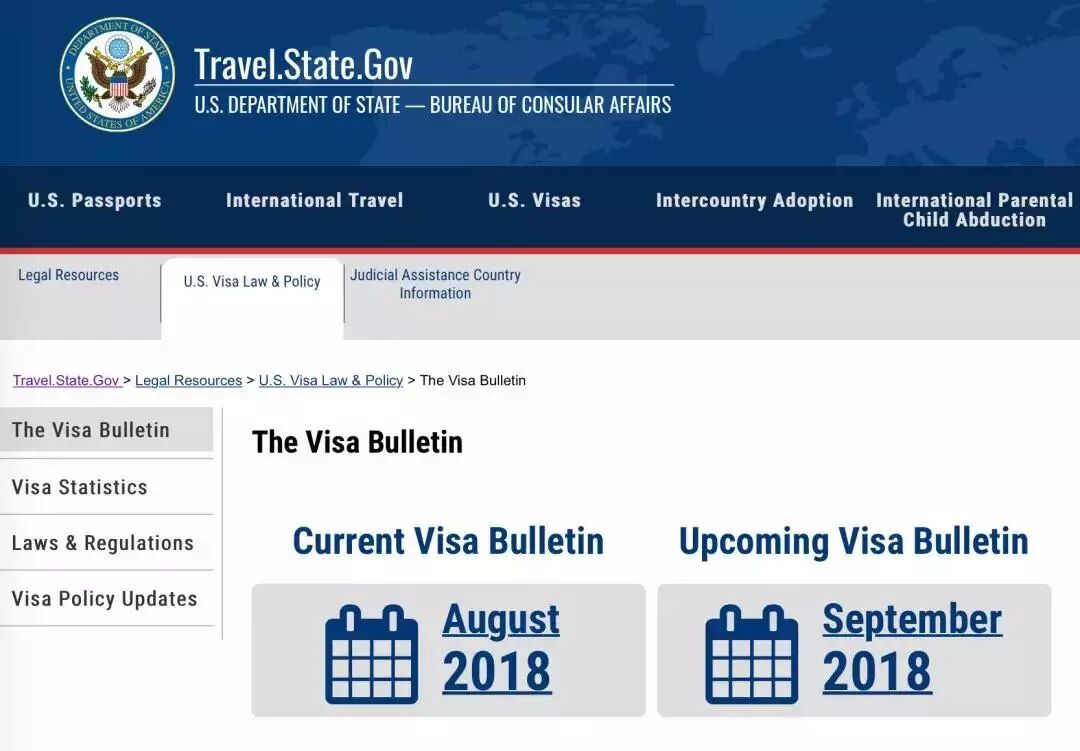 美国国务院签证办公室公布了2018年9月的移民排期签证公告!