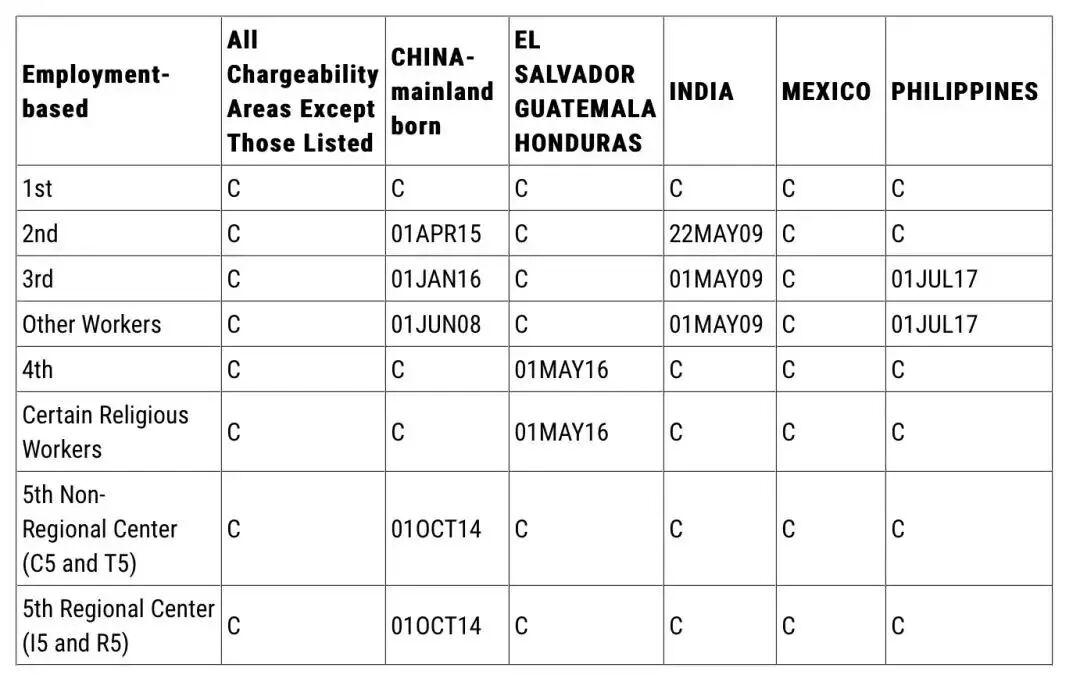 2. 当前表B的作用就是,I-526获批之后,如果你的优先日在表B之前,那么将开始走NVC(国家签证中心)的签证申请流程,同时做为每个财年排期走势的坐标。现在表B在2014年10月1日,也就基本是2019财年的排期可以前进的坐标。