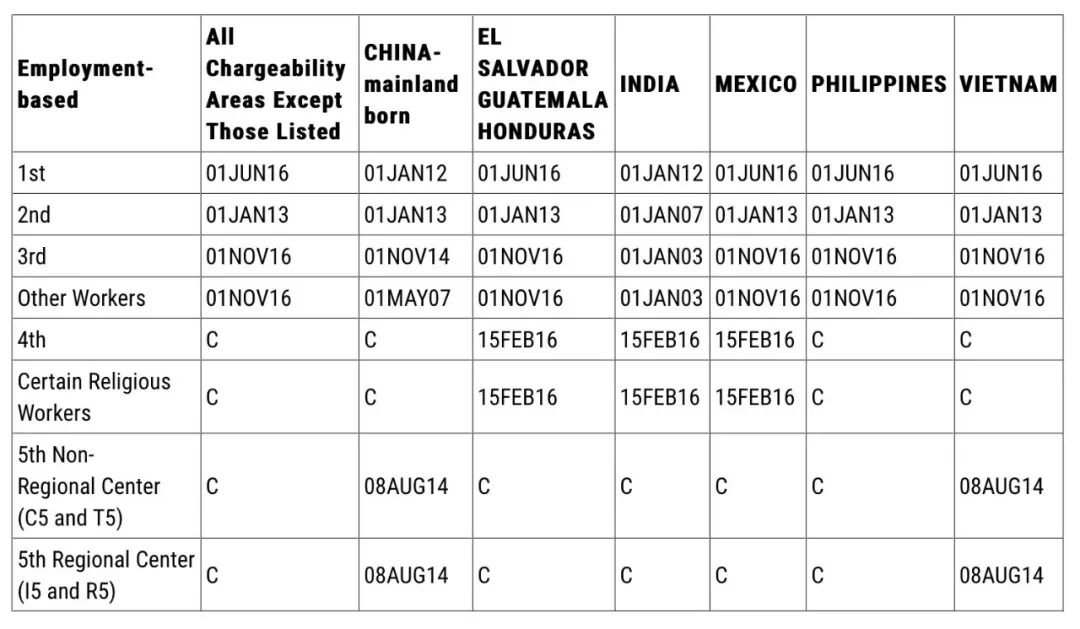 1. 按照表A,如果你的优先日在2014年8月8日(不含本日)之前,I-526已经获批之后,会收到广领馆面试安排通知,或可以在美国递交I-485转换身份申请。
