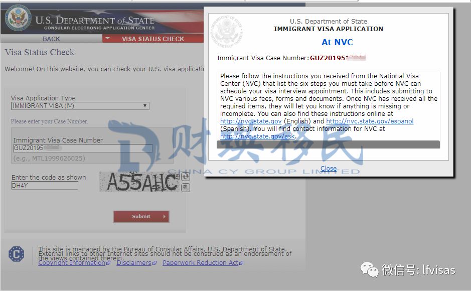通过申请人的NVC建档档案号申请人可以查到移民签证申请进度: