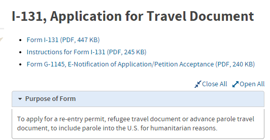 1、 向USCIS递交会申请表(即I-131表,可从www.uscis.gov处下载),填完表后附上支票,连同申请资料用信寄给移民局。