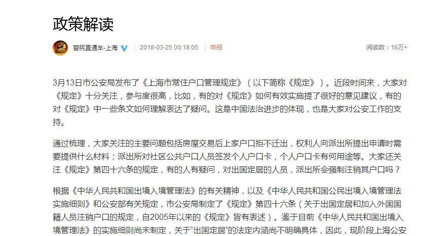 今天(3月25日)凌晨,上海市公安局官方微博 @警民直通车-上海 发布头条文章。