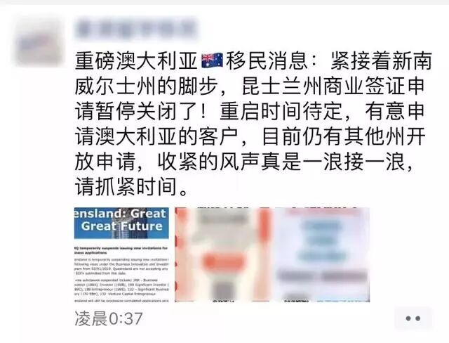 显然,新南威尔士州打响了澳洲2018-2019财年收紧商业移民的第一炮!大家对此已经非常紧张。今年刚刚第一天,昆州就出手了!全面关停商业移民类别申请!