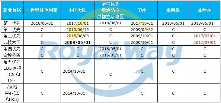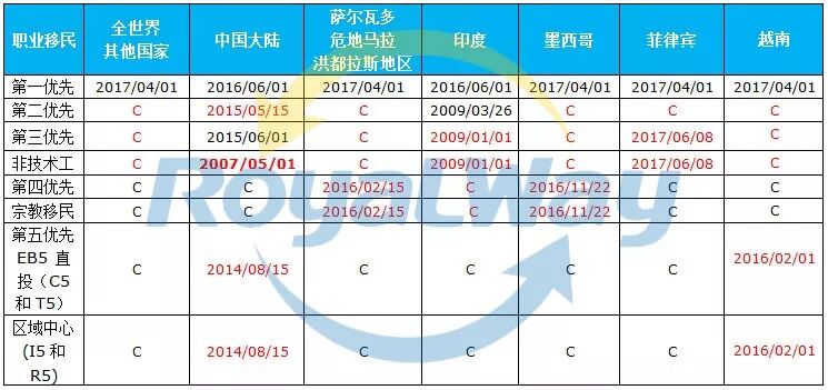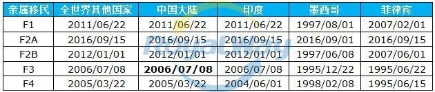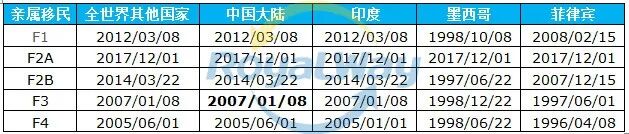 以下为10月亲属移民的排期情况的A、B表,请参考: