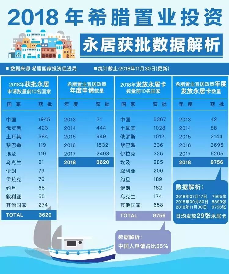 希腊移民局公布了最新一轮申请获批数据:2018年希腊投资移民获批数量暴涨,每月发放近900张永居卡,平均到每日为29张永居卡。截止到11月底已经发放9756张永居卡,希腊黄金签证今年共向3620名主申请人和6136名附属申请人发放了永久居留许可,仅在9月份,就有250名主申请人获批,比前一个月增长 34%。
